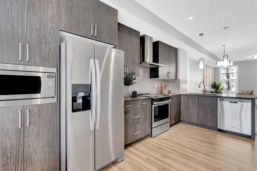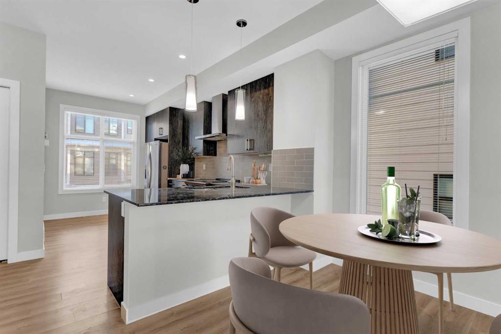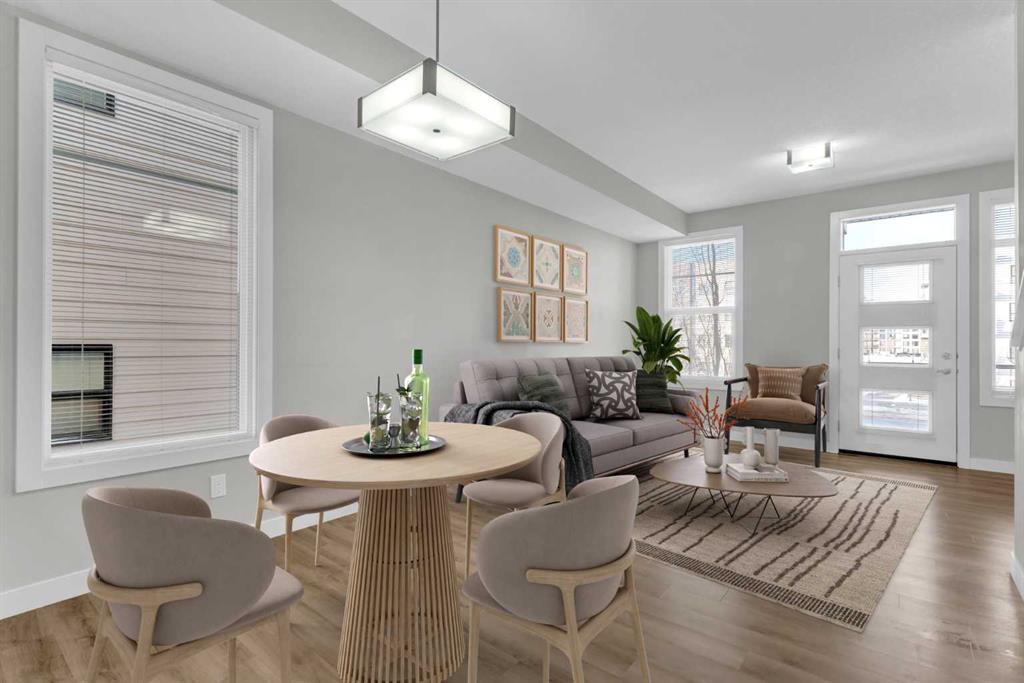 END UNIT townhome with 3 BEDROOMS | 2.5 BATHS | DOUBLE ATTACHED TANDEM GARAGE | CENTRAL A/C | TONS OF HIGH END BUILDER UPGRADES | beautifully built by Trico Homes in Calgary’s urban district SETON! Combining functionality with modern luxury, be impressed the moment you set foot the open concept main floor with natural light illuminating through the many oversized windows at every turn, you can only find in an end unit. This flows perfectly into the exquisite kitchen boasting full height cabinets, stainless steel appliances with built-in microwave, quartz countertop and flush eating bar. It seamlessly blends into the cozy dining area and spacious a living room that leads to a balcony ready for BBQs. Main floor also features 9 ft ceiling height, knockdown texture, vinyl flooring that is durable and easy to clean. A half bathroom completes this level. The upper floor offers 3 generously sized bedrooms with the master suite featuring a large walk-in closet and full ensuite. Convenient laundry is also located on the upper floor. Parking will never be a problem, thanks to the double attached tandem garage that is perfect for keeping your car warm with lots of space for storage and a utility room. This unit also has plenty of street parking and close distance to visitors parking. Maintenance-free living in a well managed complex with low condo fee. This property is strategically located within walking distance to YMCA , The South Health Campus hospital, public library, JCS High School, Cineplex Cinema, banks, grocery stores, restaurants, bars, and a huge green space! Book your showing today and don’t miss out on the opportunity to own this beautifully upgraded end unit townhome! Some photos have been virtually staged to help visualize the space ** 3D VIRTUAL TOUR AVAILABLE** MLS®: A2273816 - Seton 3 (or more) Storey $470,000